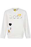 Heren crewneck sweatshirt, 50476388 Salbo LO, van het merk Hugo Boss. In de kleur wit/white. De sweater is voorzien van een bedrukte logoprint aan de voorkant en drie geborduurde figuurtjes. Aan de achterzijde heeft de trui een afneembare logopatch waar 'BOSS' opstaat. Hugo Boss raad de gebruiker aan de logopatch af te nemen voor het wassen van de trui. Tot slot is de sweater 100% samengesteld van katoen.