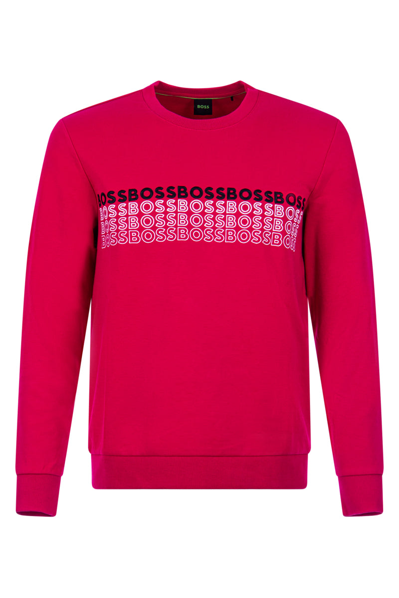 Deze 660 Mid Pink gekleurde 50497176 sweater is van het Boss. Door de ronde hals en de elastische manchetten rond je polsen en heup, zit deze sweater ultiem comfortabel. Op de borst staat een artwork waar het Boss logo ik wordt verwerkt.