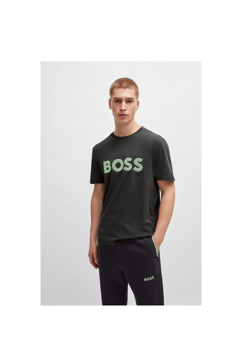 Moderne T-shirt met regular fit. Ronde hals en korte mouwen. Voorzien van opvallend BOSS-logo op de borst. Verkrijgbaar in een stijlvolle grijstint. Ideaal te combineren met casual broeken of shorts.