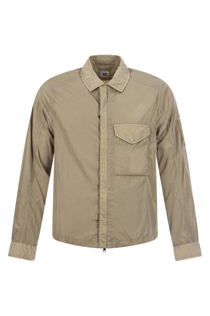Dit 335 Light Grey gekleurde 15CMOS041A shirt is van C.P. Company. Het overshirt is voorzien van een dubbeldeelbare rits en verstelbare manchetten op de mouwen. De borstzak is afsluitbaar met een drukknoop en de iconische C.P. Company lens zit op de linker mouw.