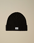 Ribgebreide muts met minimalistische uitstraling. Voorzien van een omgeslagen rand. Subtiel C.P. Company-logo op de voorkant. Ideaal voor koelere dagen. Kleur: zwart. Combineer met jassen en sjaals voor een complete look.
