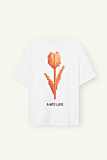 Wit T-shirt met ontspannen pasvorm. Ronde hals en korte mouwen. Voorzien van subtiele opdruk "DON'T WASTE CULTURE" op de borst. Achterzijde heeft een kleurrijke, pixelachtige bloemenprint met de woorden "A NICE LIFE".