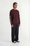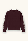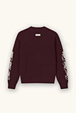 Bordeauxkleurige trui met klassieke ronde hals en ontspannen pasvorm. Subtiele merknaam op de mouwen. Ribgebreide boorden aan hals, mouwen en zoom. Ontwerp zonder zakken en slank silhouet.
