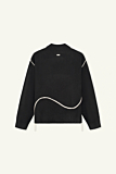 Trui met een losse pasvorm. Voorzien van een subtiele, contrasterende lijnpatroon. Geribde ronde hals en manchetten. Zwart met fijne witte details. Ideaal te combineren met zowel casual als formele broeken. Achterzijde met klein metalen logo.