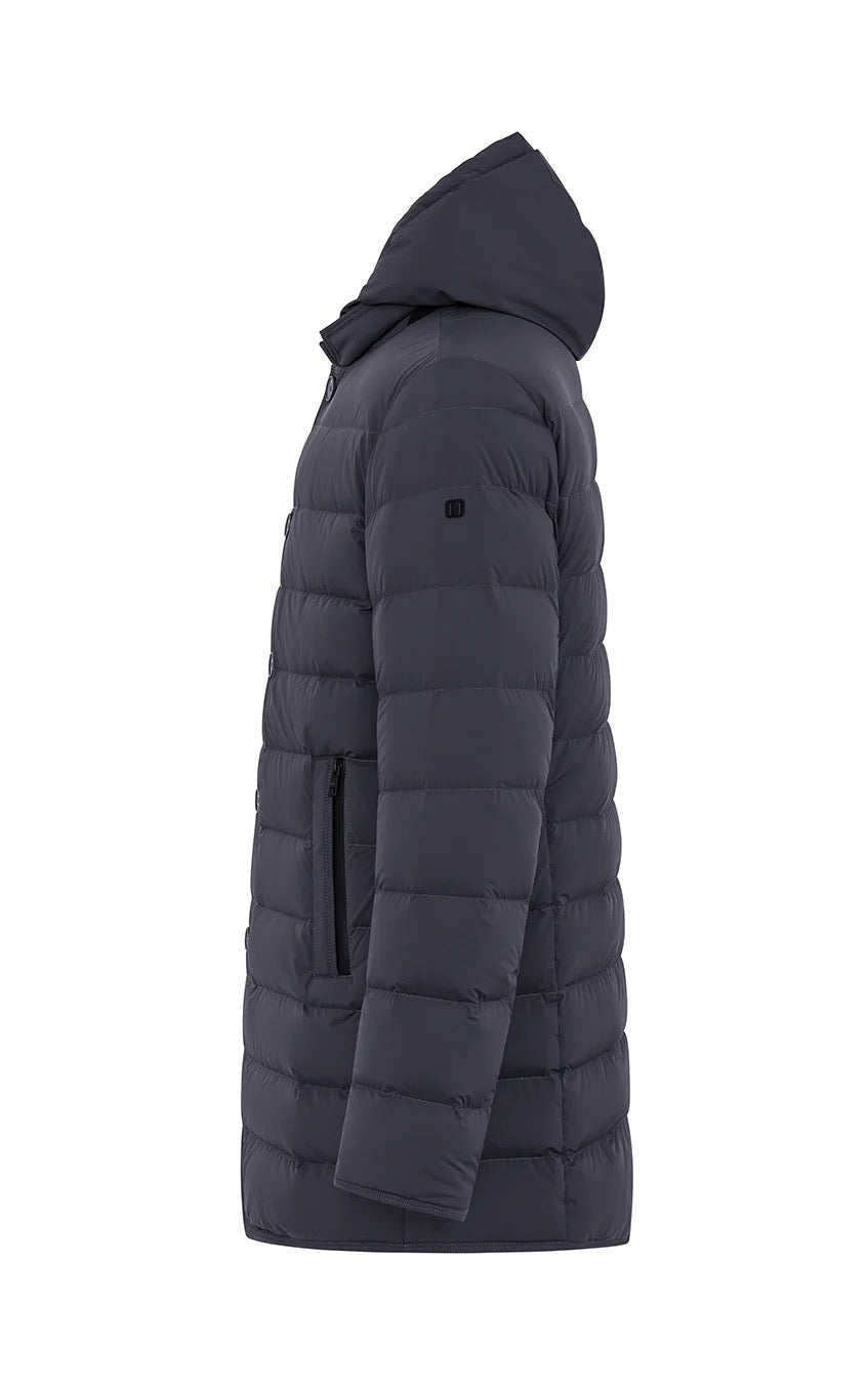 Dit kledingstuk heeft een gestroomlijnde pasvorm met een moderne uitstraling. De jas is uitgevoerd in een gewatteerde stijl met horizontale stiksels die zorgen voor een eigentijdse look. Voorzien van een vaste capuchon en functionele zakken met ritssluiting om persoonlijke items veilig op te bergen. De gestructureerde sluiting is voorzien van zowel een ritssluiting als drukknopen voor extra bescherming tegen de elementen. Subtiel logo op de mouw.