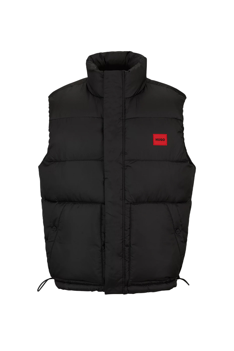 Bodywarmer van het merk HUGO. Rechte pasvorm. Voorzien van een opstaande kraag en ritssluiting aan de voorkant. Twee zijzakken met drukknopen en een binnenzak. Iconisch rood HUGO-logo op de borst. Verstelbare trekkoord aan de zoom voor extra functionaliteit.