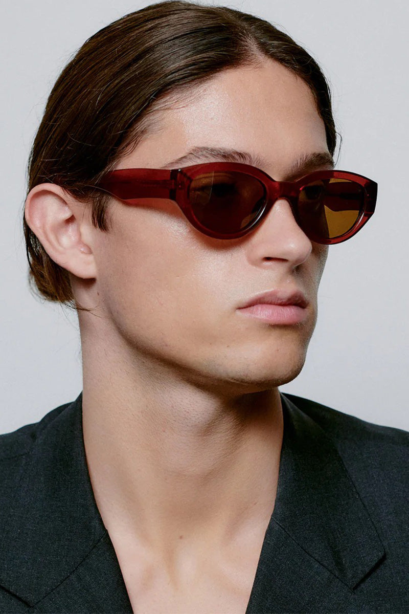 Trendy zonnebril met eigentijdse, ovale glazen. Slanke, stevige kunststof montuur in een warme bruintint. Donkere glazen bieden bescherming tegen de zon. Discreet merklogo aan de binnenzijde van de pootjes. Lichtgewicht ontwerp voor dagelijks comfort en stijl.