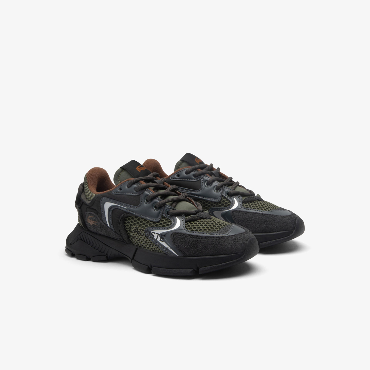 Moderne sneakers met een opvallend design. Vetersluiting voor een verstelbare pasvorm. Het bovenwerk combineert verschillende materialen voor een dynamische look. Geaccentueerd met een contrasterend Lacoste-logo op de zijkant. Verkrijgbaar in een veelzijdige kleurstelling die zwart met mosgroen en bruin combineert. Geschikt voor dagelijks gebruik en verschillende gelegenheden.