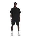 Zwarte korte broek met moderne uitstraling. Elastische tailleband met verstelbaar trekkoord voor optimale pasvorm. Voorzien van steekzakken aan de zijkant. Discreet logo op de linkerpijp. Ideaal voor diverse gelegenheden en eenvoudig te combineren met verschillende stijlen.