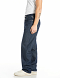 Rechte jeans met klassieke vijf-pocket-stijl. Voorzien van knoopsluiting en suggestieve stiksels op de achterzakken. Het logo is subtiel verwerkt op de tailleband. Regular fit. Kleur: donkerblauw, ideaal te combineren met diverse kledingstukken.