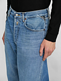 Rechte jeans met medium wassing. Twee steekzakken voor, twee achterzakken met gestikt detail. Knoopsluiting. Uitgevoerd met klassiek Replay logo op de achterzijde. Gestructureerd met dubbele stiknaden voor extra duurzaamheid.