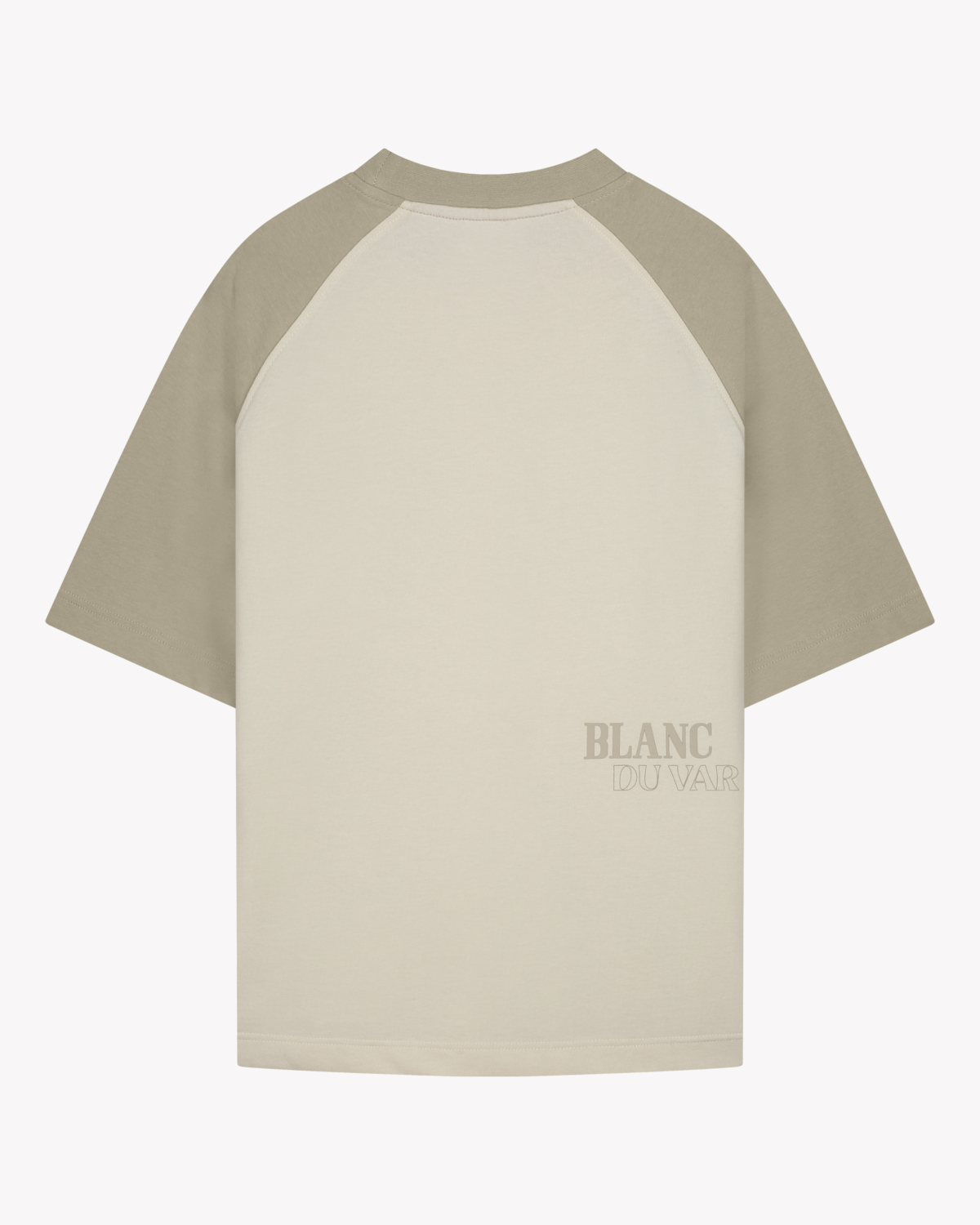 Saint Blanc T-shirt Department Off White Raglan T-shirt met contrasterende mouwen. Regular fit. Ronde halslijn. Subtiele logo-print op de voor- en achterkant. Voorzien van korte mouwen.