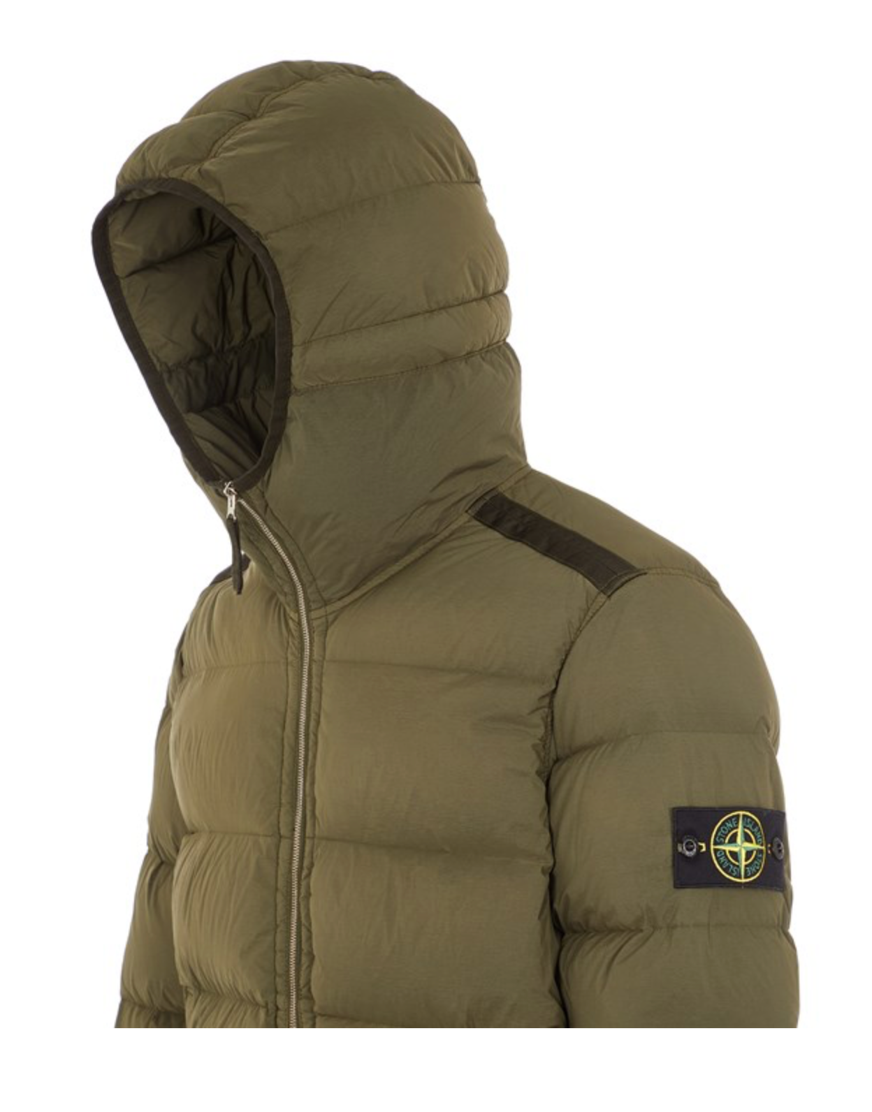 Jas met gewatteerde structuur en capuchon. Voorzien van ritssluiting. Twee zakken met ritssluiting op de voorzijde. Elastische mouwuiteinden en zoom voor een aansluitende pasvorm. Kenmerkend Stone Island-logo op de linkermouw.