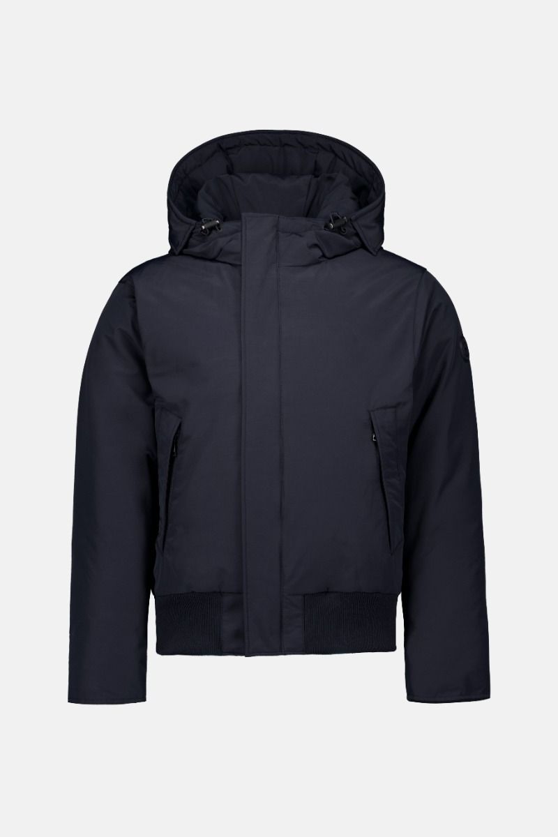 Bomberjack in een diepe blauw tint, ontworpen door het merk Airforce. Het jack heeft een tijdloos en strak ontwerp met een comfortabele pasvorm geschikt voor dagelijks gebruik. Uitgerust met een stevige ritssluiting en een praktische capuchon voor extra bescherming tegen de elementen. Aan de voorkant bevinden zich twee steekzakken met ritssluiting voor het veilig opbergen van kleine voorwerpen. Subtiele ribboorden aan de mouwen en zoom zorgen voor een aansluitende afwerking en extra isolatie. Het jack heeft geen opvallende logo's, waardoor het een minimalistische uitstraling behoudt.